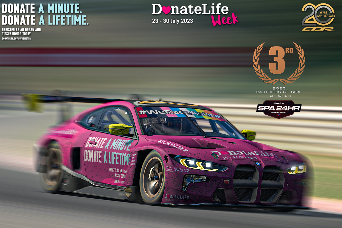 This weekend saw the start of #donatelifeweek and the #iracing 24 hours of Spa special event. In another stellar team effort, we took the Donatelife Week BMW from as low as 19th through to a podium 3rd place position in the top split.